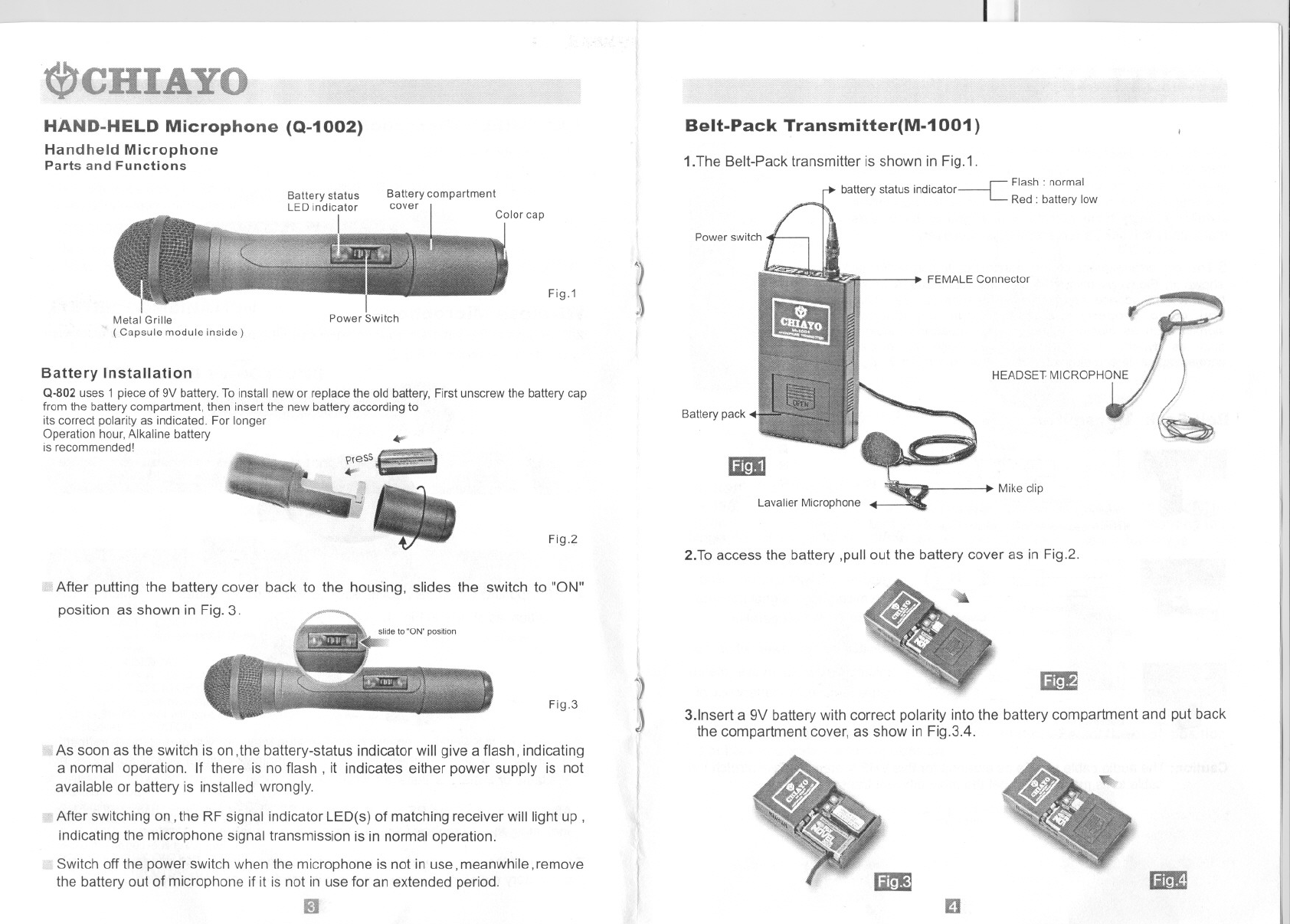 1.The Belt-Pack transmitter is shown in Fig.1.