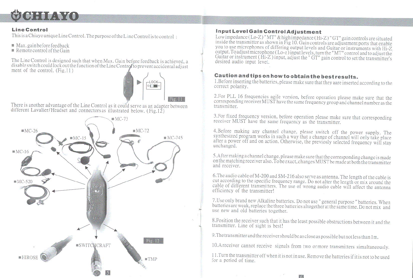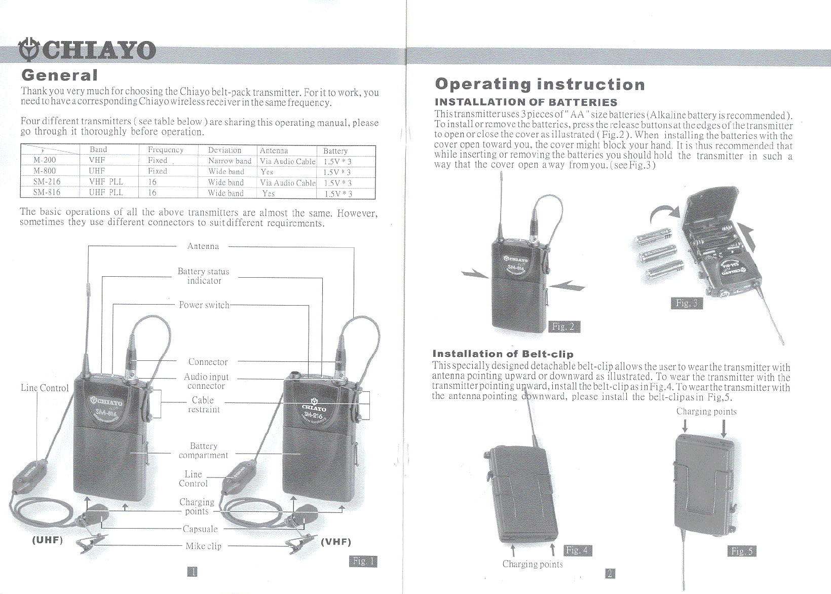 Chiayo Electronics Co Ltd Wireless Microphone Belt Pack users manual