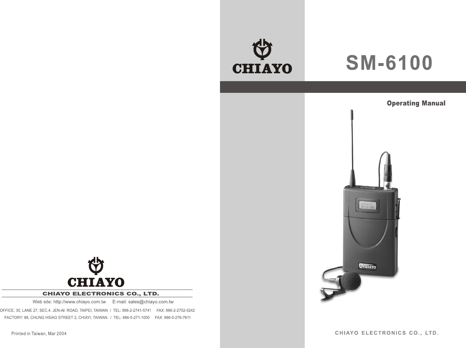 Chiayo Electronics Co SM-6100 Wireless Microphone User Manual
