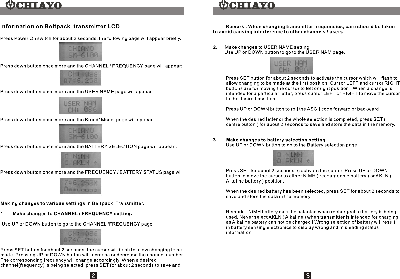 Chiayo Electronics Co Ltd Wireless Microphone Users Manual