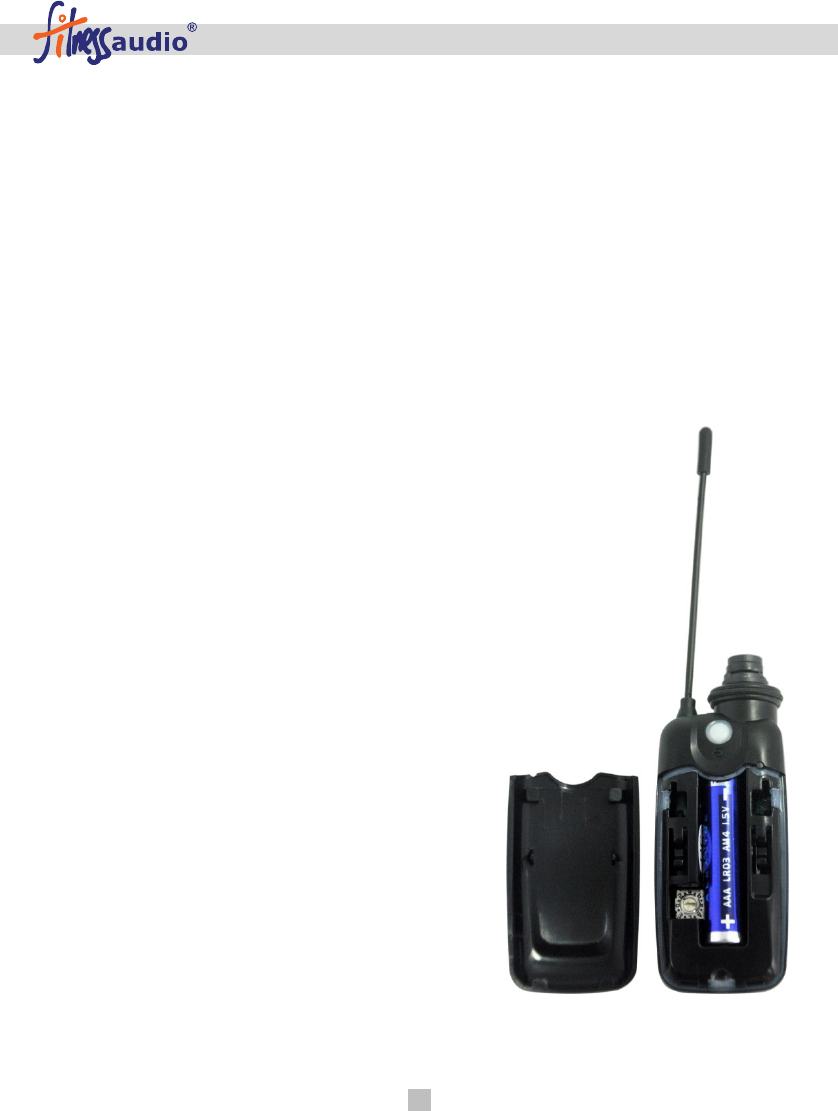 matching channel number on the Belt-Pack Transmitter and test for voice level.