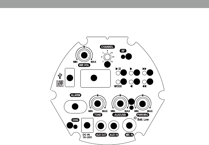 WR power/volume control switch. Switch on the corresponding transmitter and set this