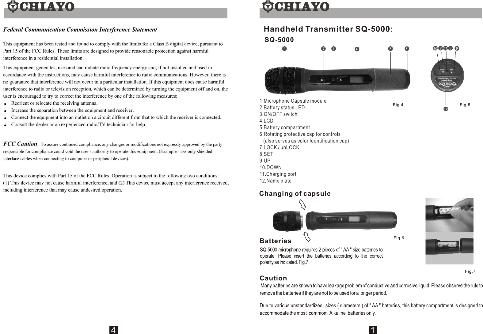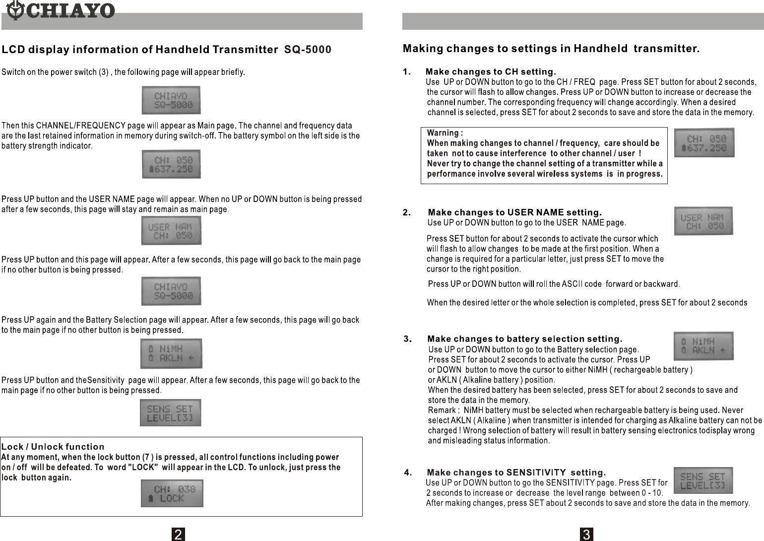 Chiayo Electronics Co SQ-5000 Wireless Microphone User Manual SQ 5000