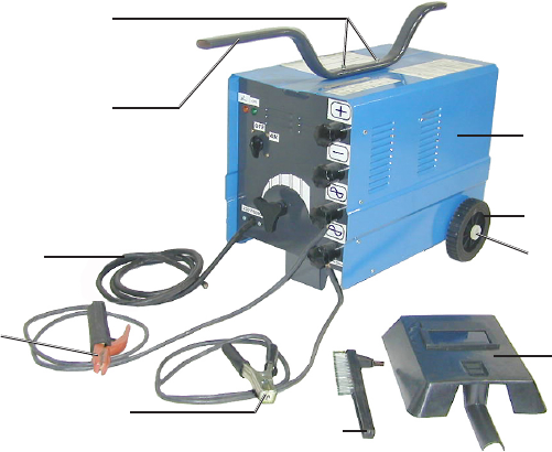with Electrode Holder, 2M Cable with Ground Clamp, Welding Mask and Combination Brush/Welding Hammer.
