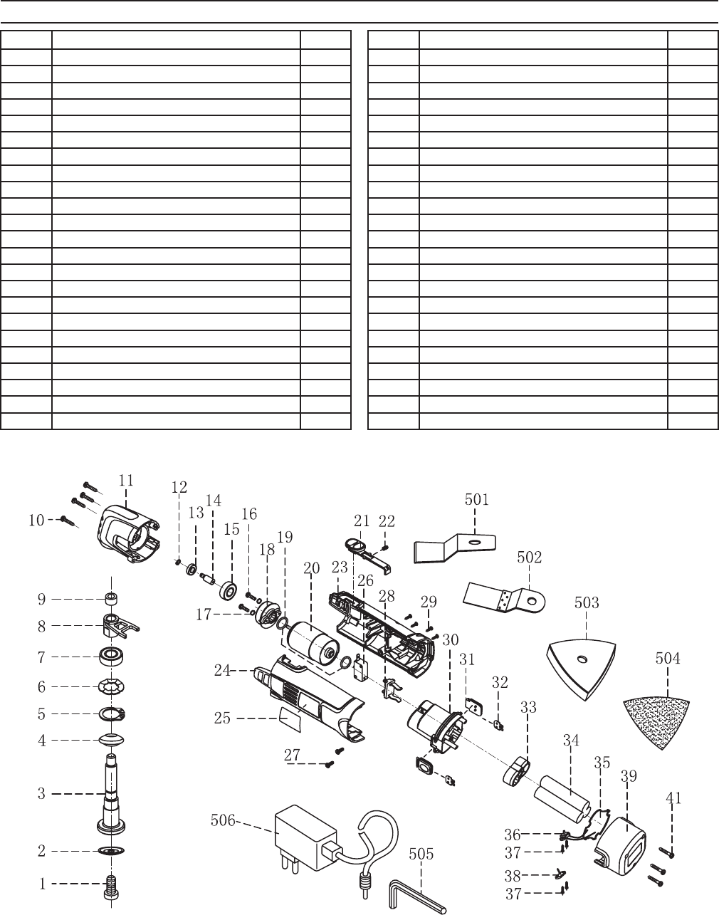 PARTS LIST & ASSEMBLY DIAGRAM