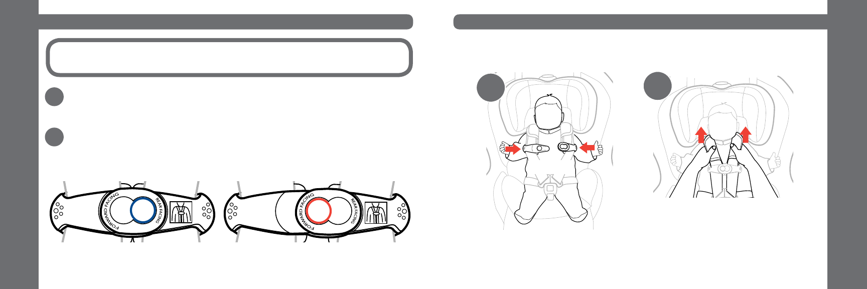 Chest Clip - Either “FORWARD-FACING” or “REAR-FACING”.
