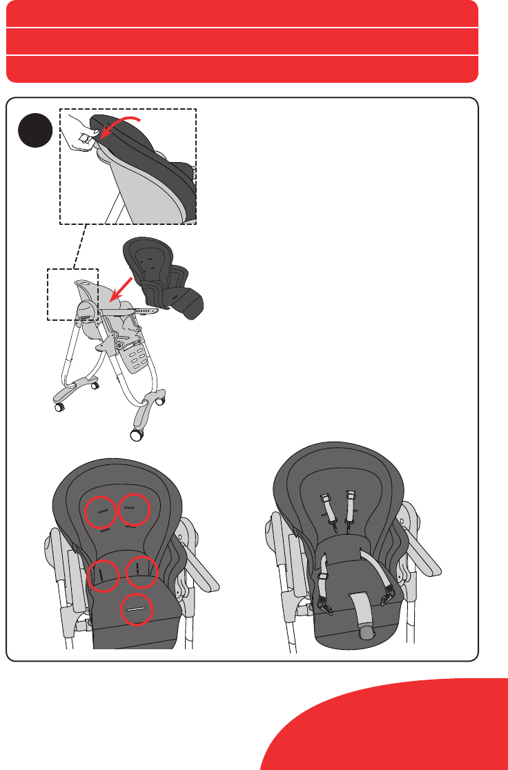 Puede quitar el cojÍn del asiento para limpiarlo. Para hacerlo, suelte el arnés de sujeción y estire el cojín