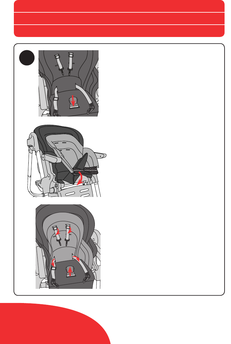 On peut enlever le coussin du siège pour le nettoyer. Pour ce faire, desserrer le harnais et tirer le