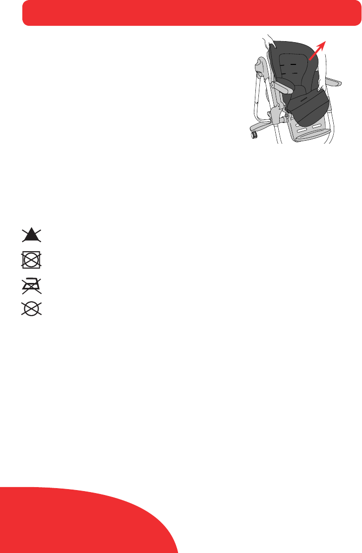 Ne pas laver le coussin du siège à la machine. Ne pas utiliser d’aérosol ou de lingettes de javellisant