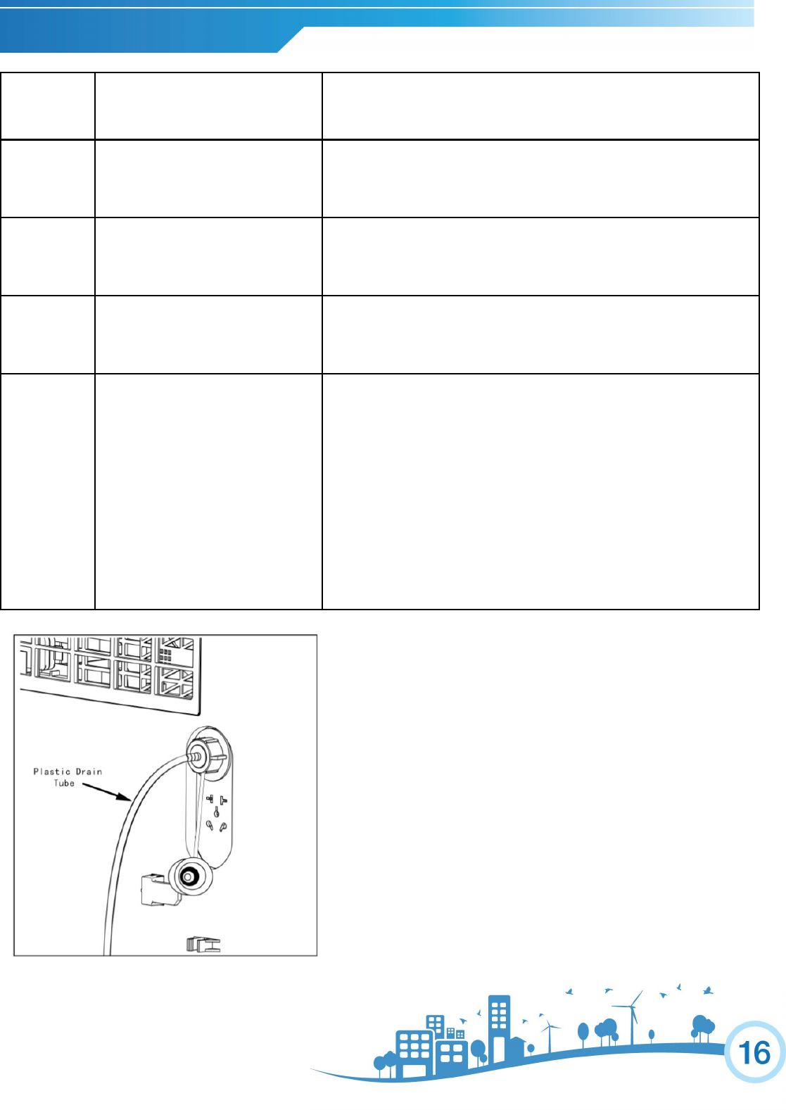 Incorrect drain hose is installed Make sure that the included plastic drain tube and nozzle