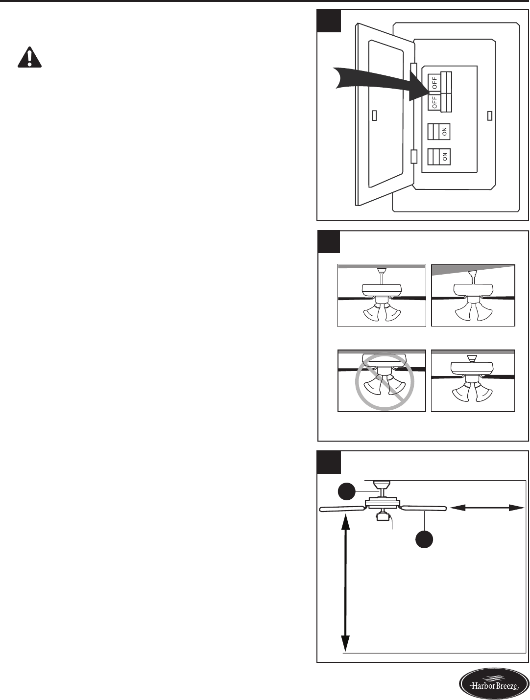 • Make sure the installation site you choose allows a minimum clearance of 7 ft. from the blades to