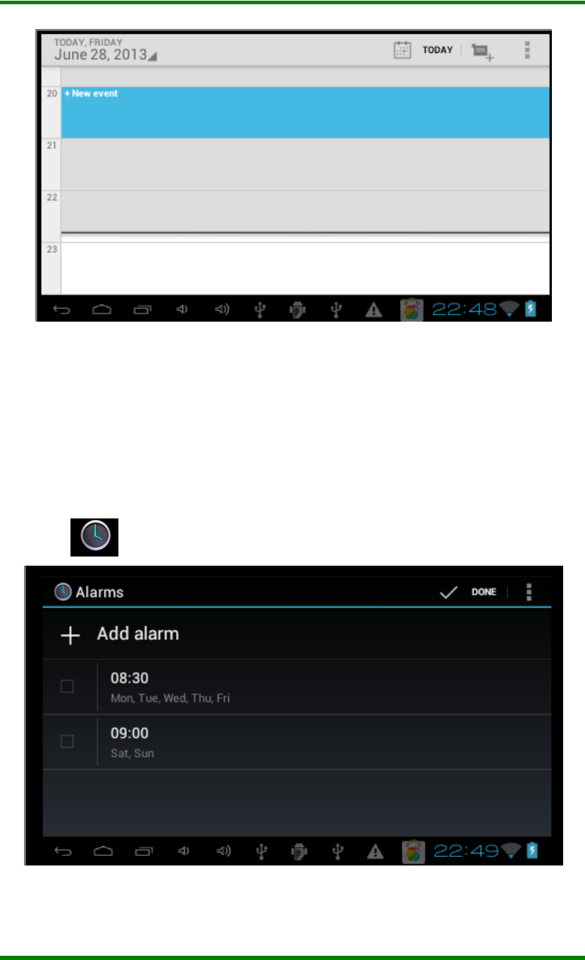 Set alarm clock by <setting-add alarm clock>. You can press one alarm clock slightly to