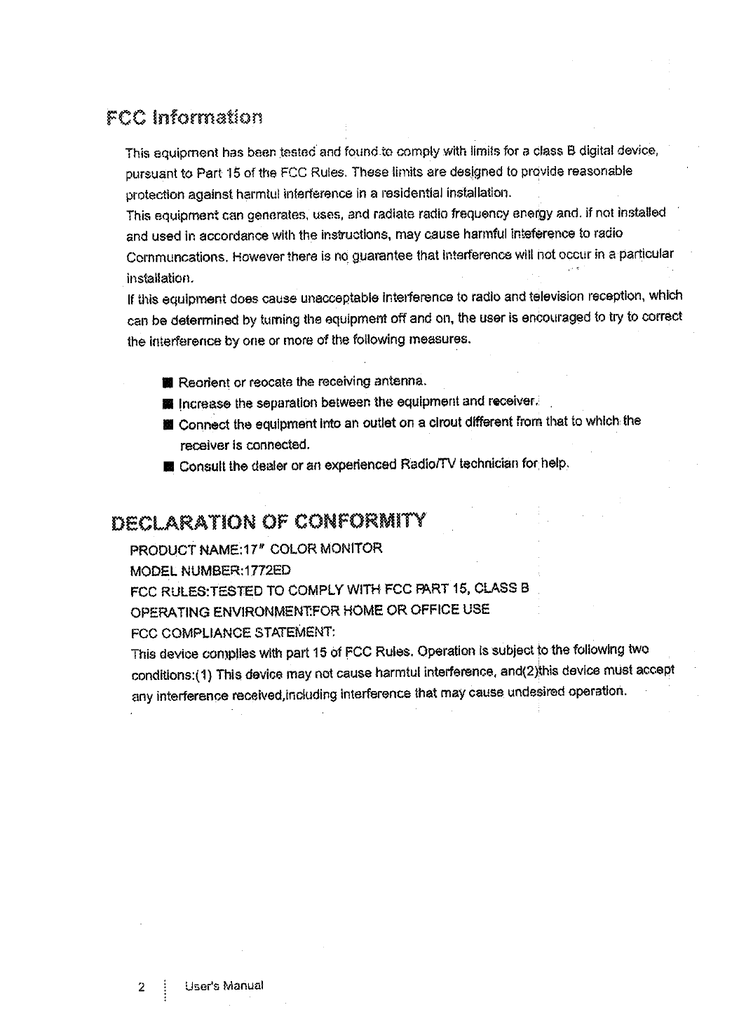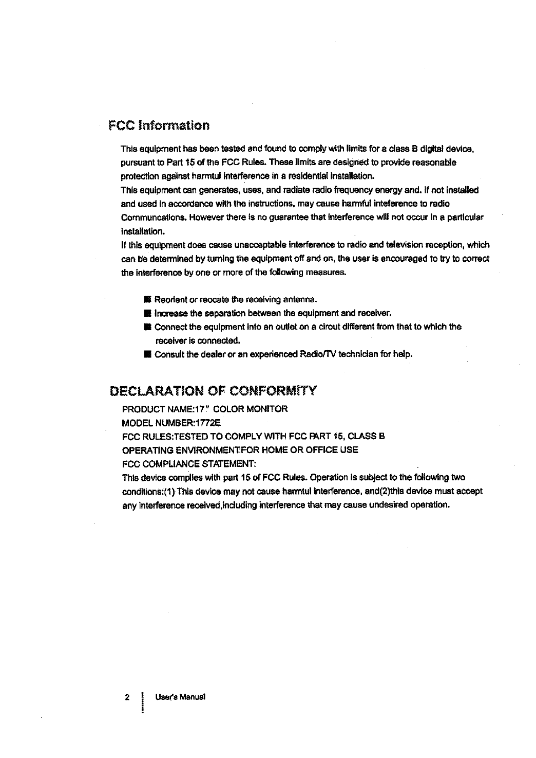 China Great-Wall Computer Shenzhen Co. Ltd. Color Monitor Users Manual