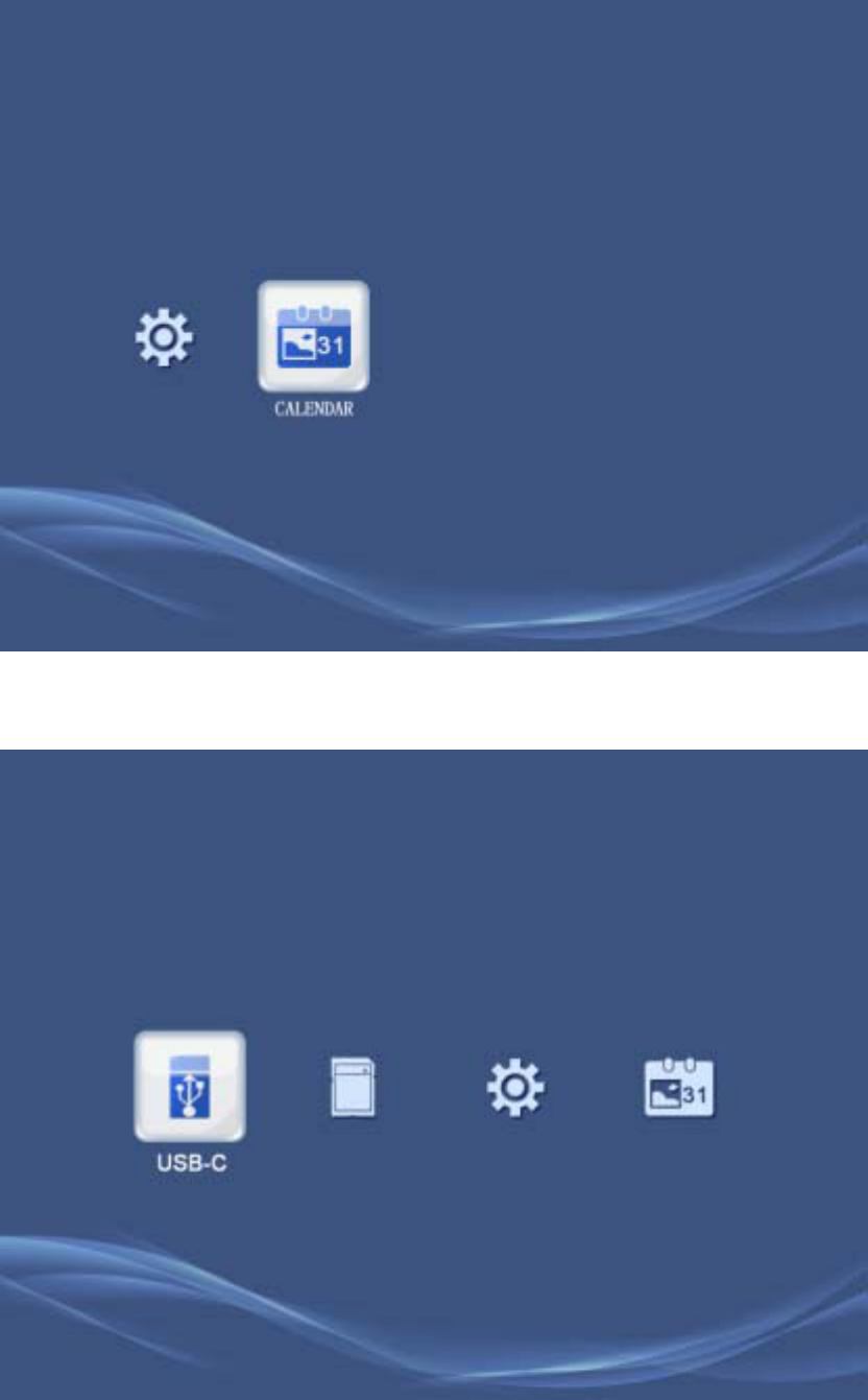 displays along with picture slideshow, or press “CALENDAR” button on remote controller to