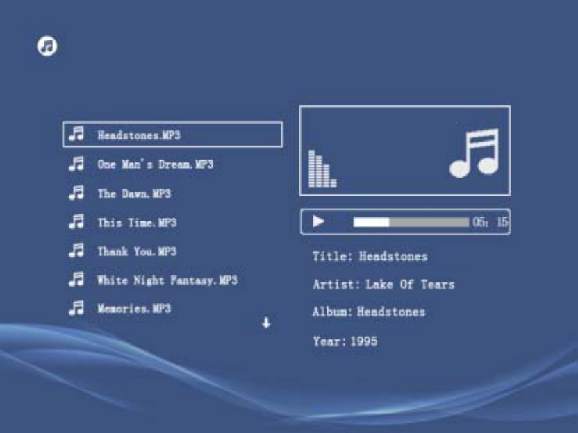 Select “Music” in main menu, press “ENTER” button to enter into playing list interface. Select