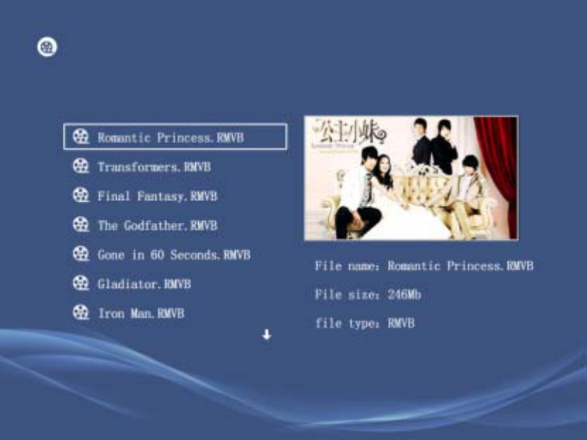 Select “Movie” in main menu, press “ENTER” button to enter into video playing list