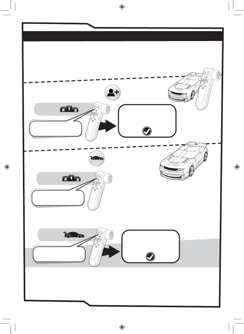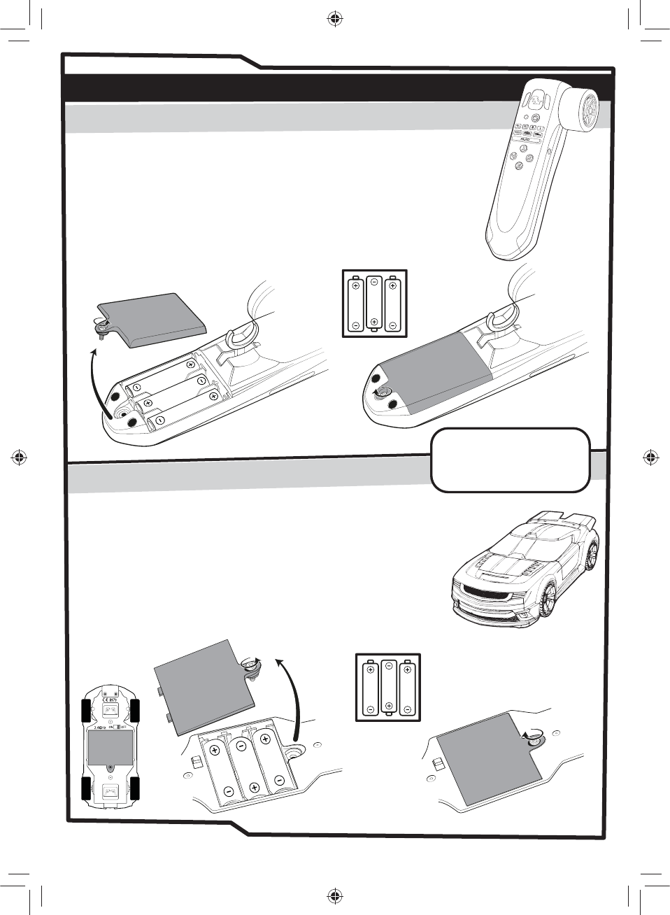 Each vehicle requires 3 x 1.5V AAA batteries