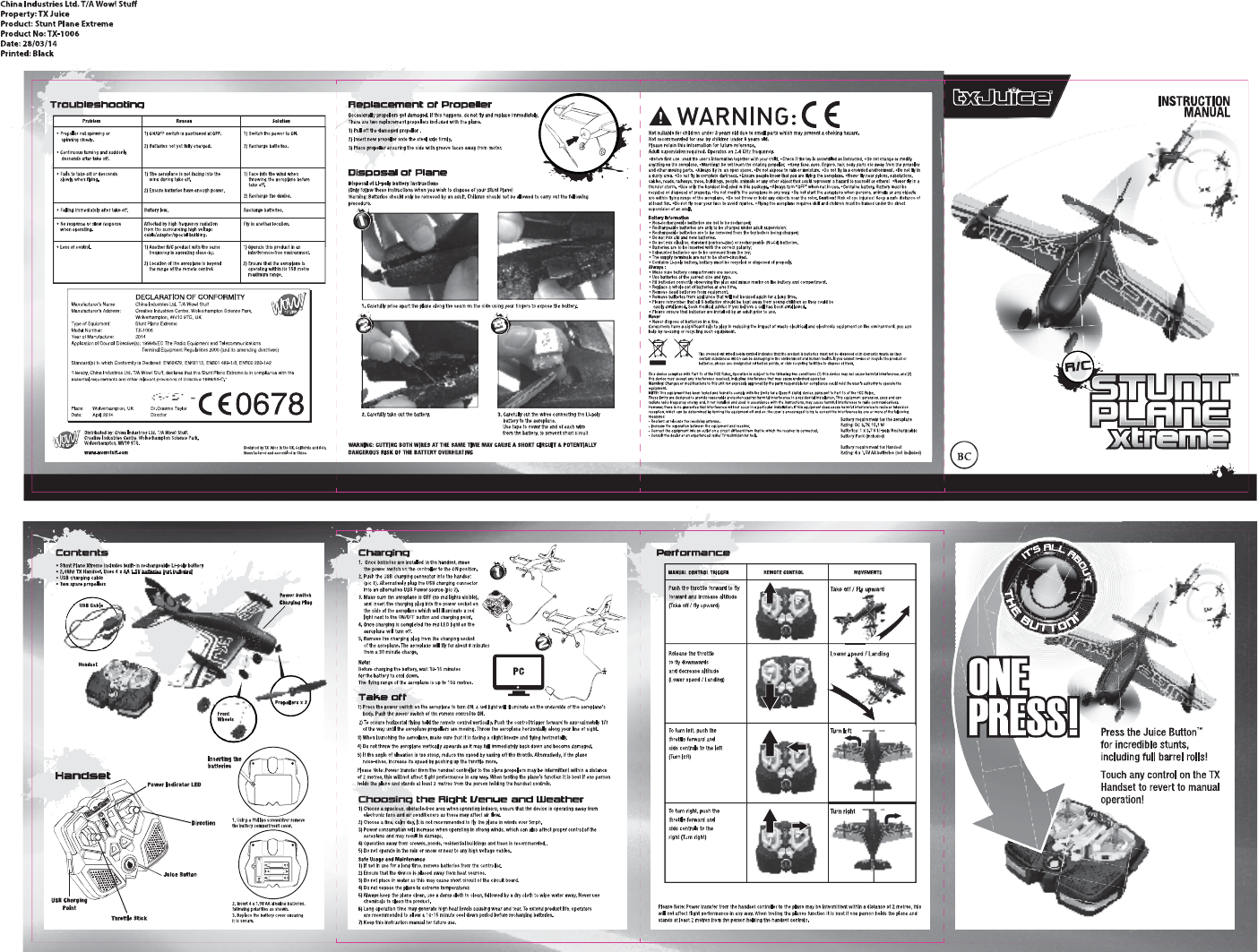 China Industries Ltd T/A Wow! Stuff Stunt Plane Xtreme TX 1006 STUNT PLANE IM