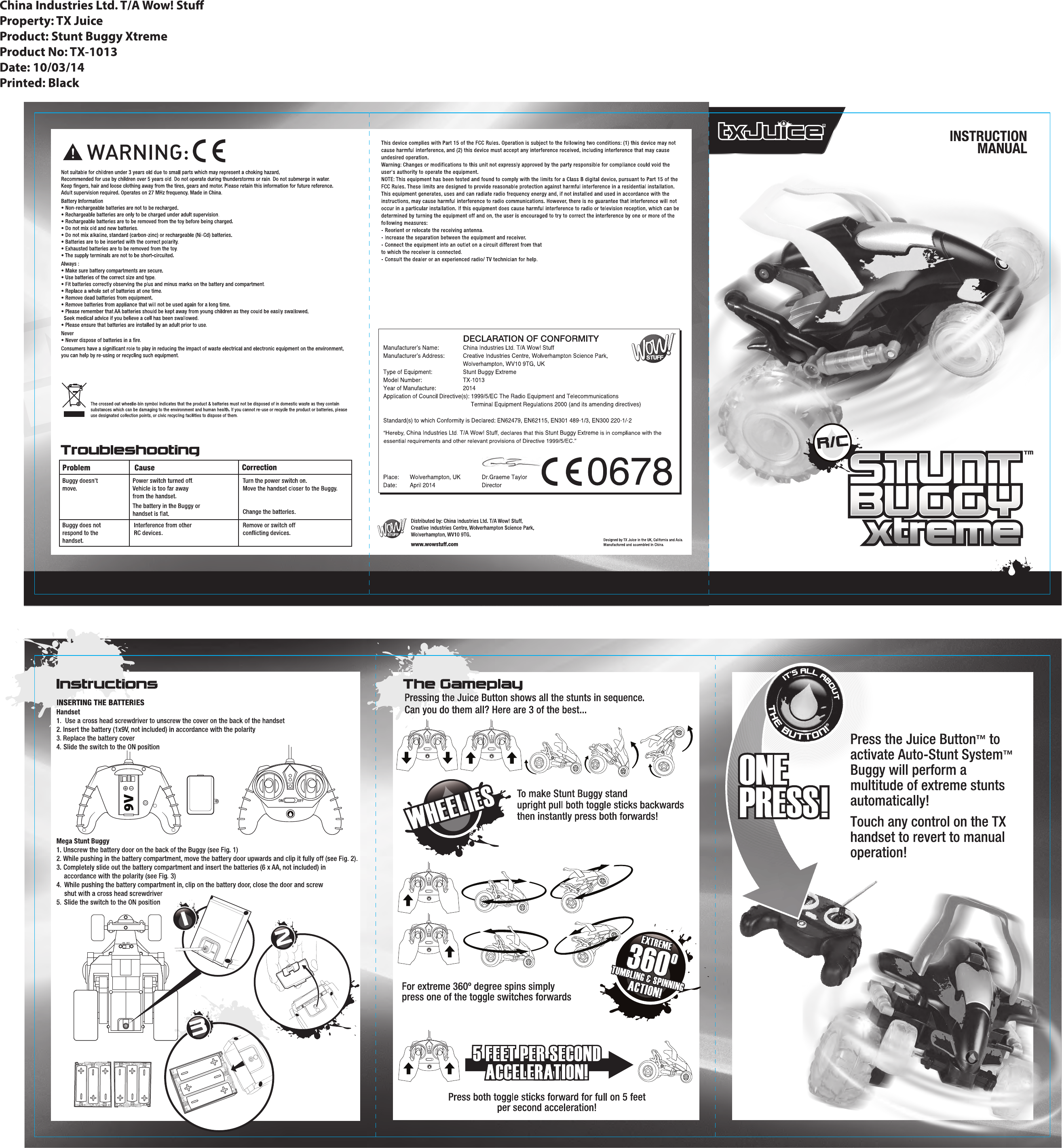 China Industries Ltd T/A Wow! Stuff Stunt Buggy Xtreme TX 1013 STUNT BUGGY XTREME IM