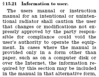 You are cautioned that changes or modifications not expressly approved by the party responsible for