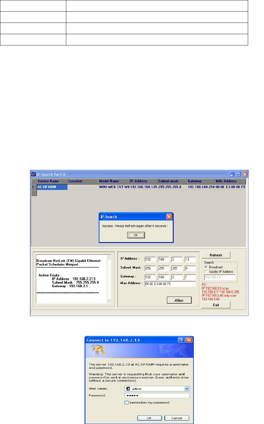 1. Run IP Search tool. You can find the file in CD-Rom attached with AC-RF400M.