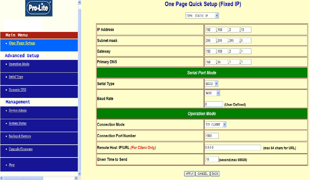 Remote Host IP Address(For Client Only):Assign the remote server. You need to assign when AC-RF400M is