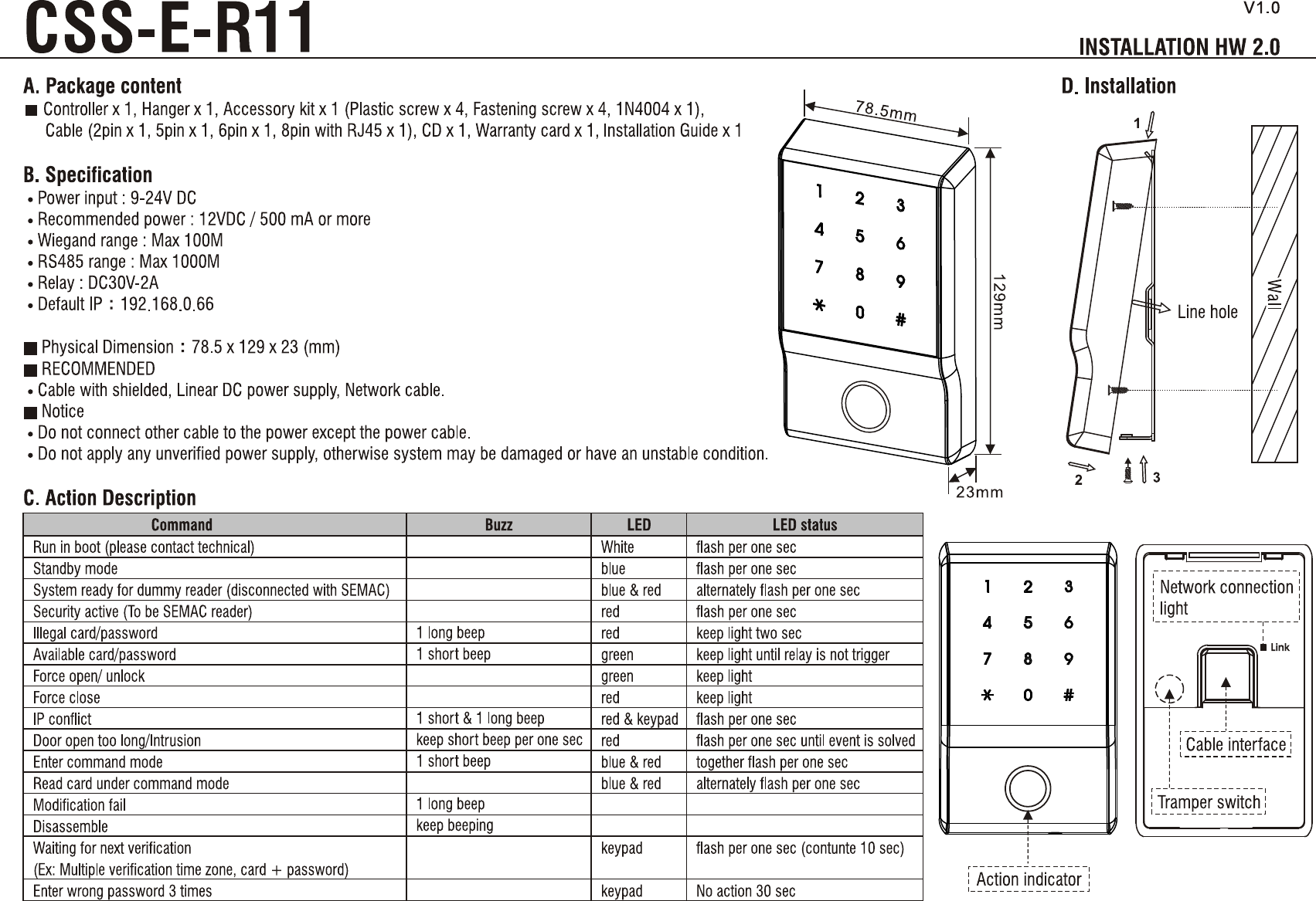 Chiyu Technology Co., Ltd. Time Attendance & Access Controller CSS E R11 WEBPASS II