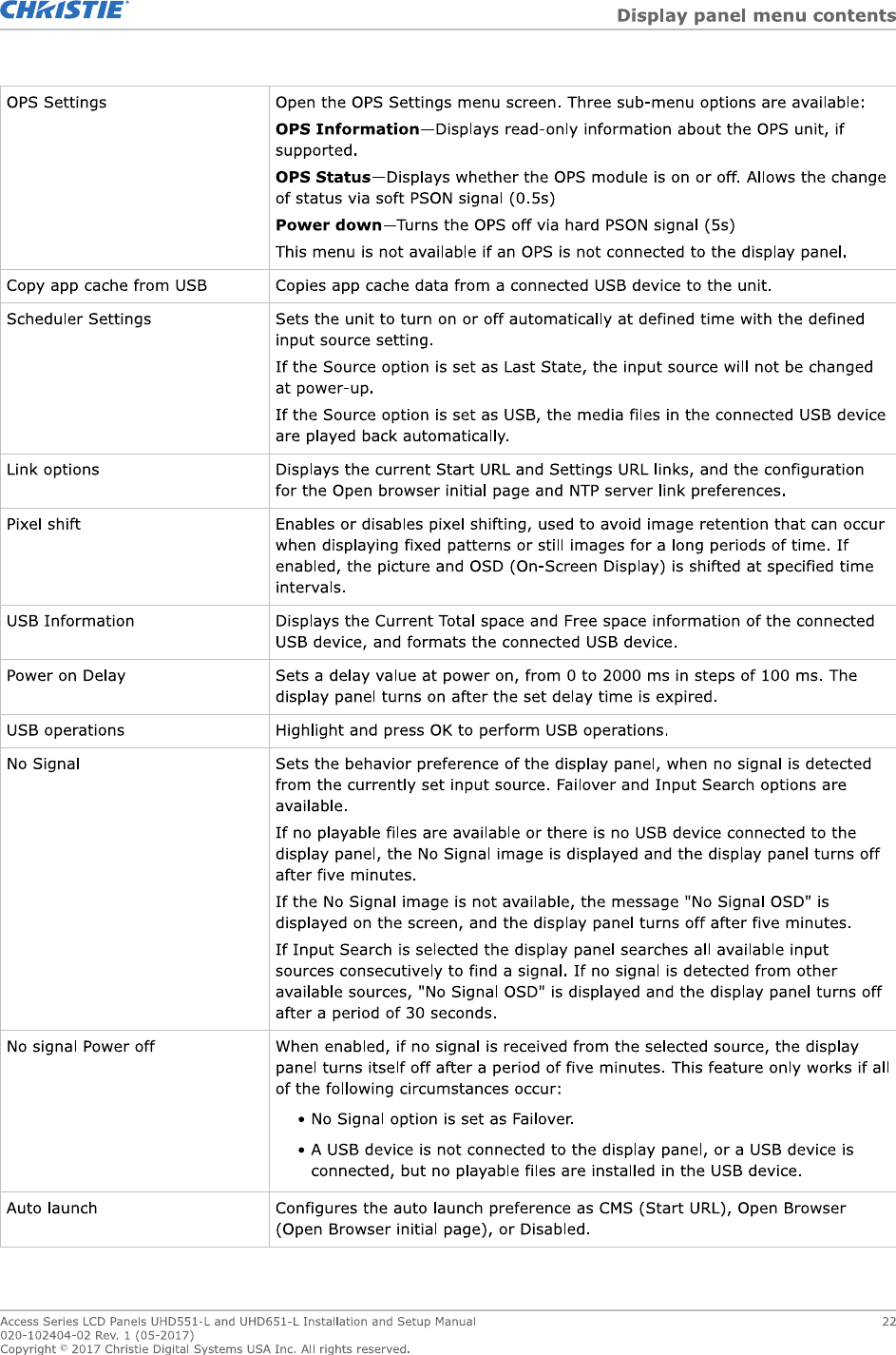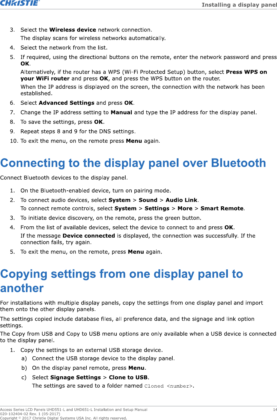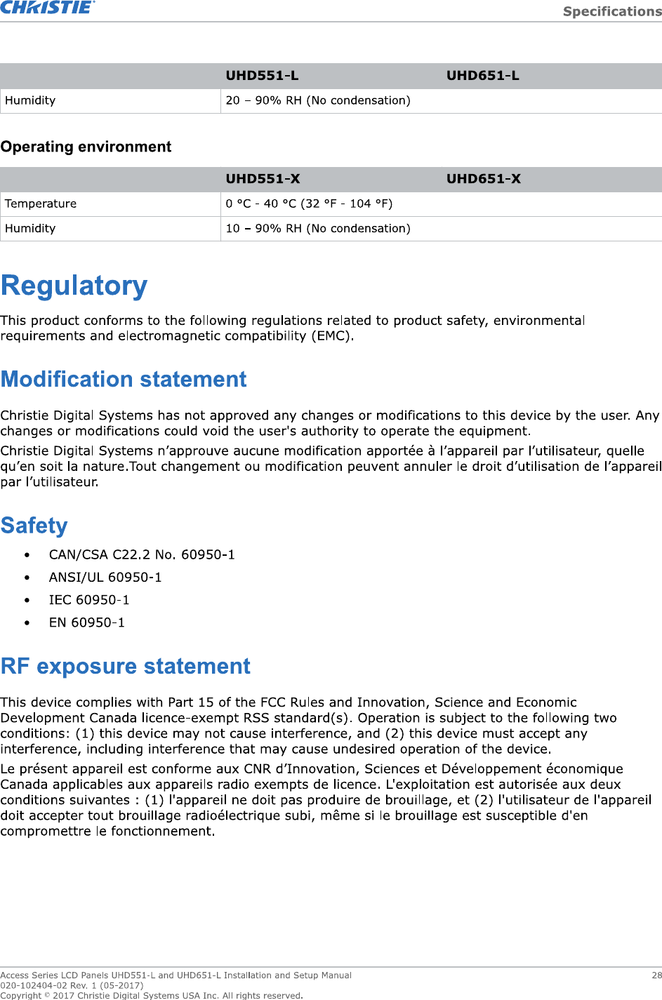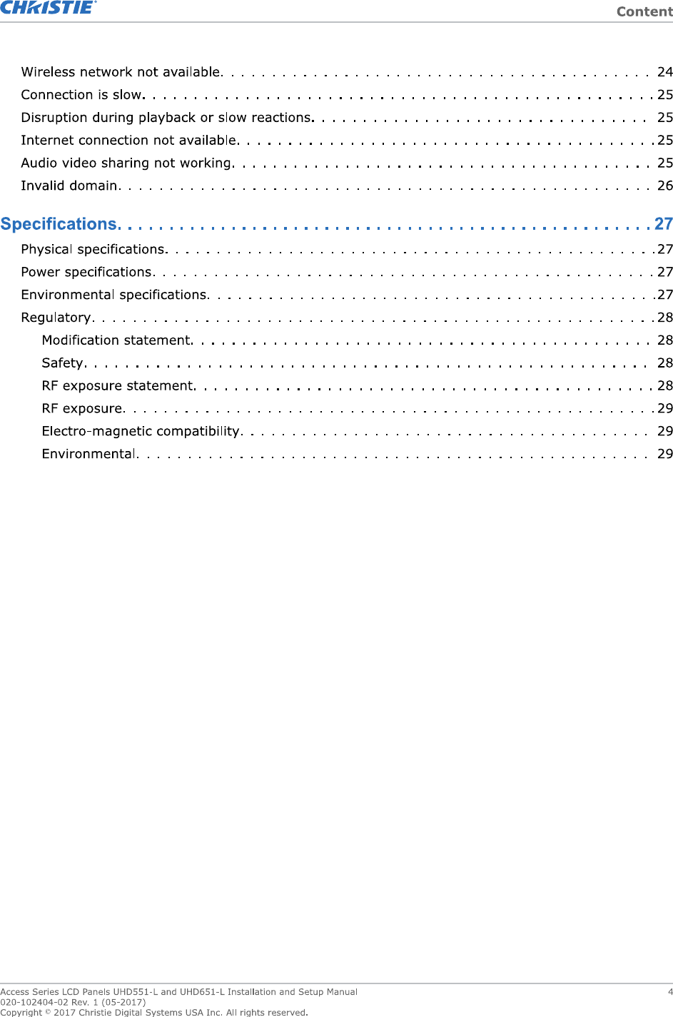 Christie Digital Systems Canada UHD651L TV set for digital signage with WiFi and bluetooth User Manual UH651 L v2
