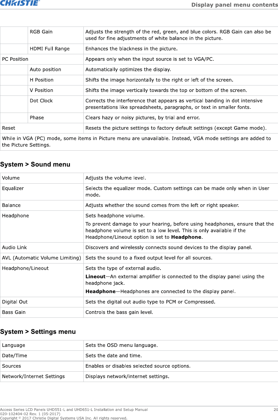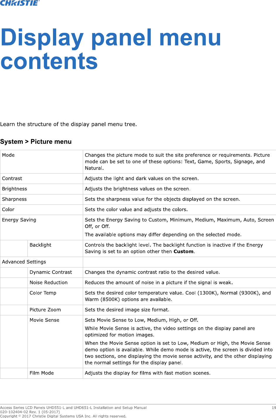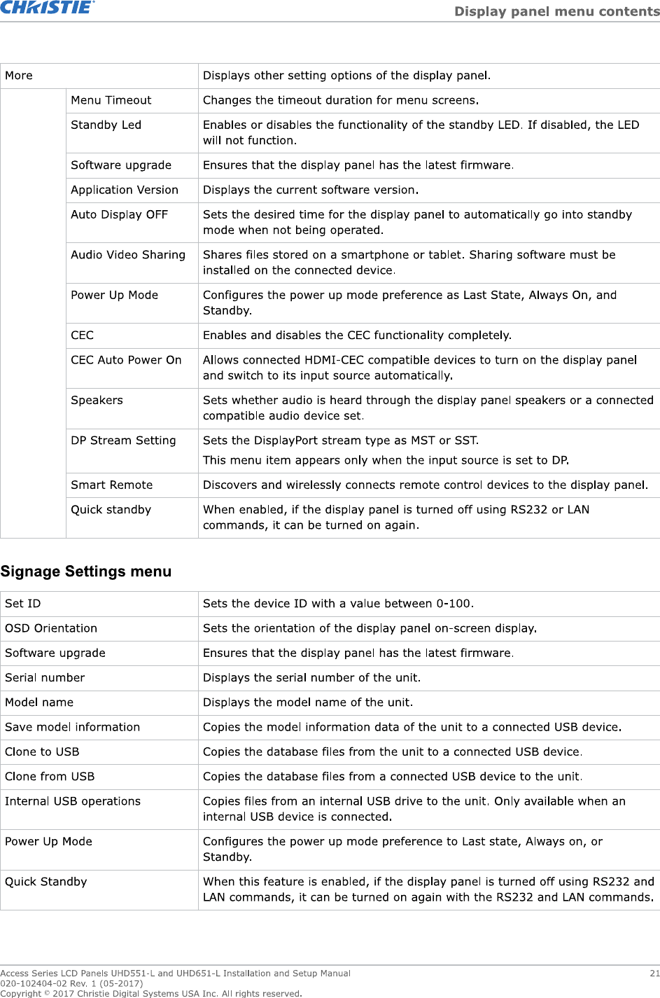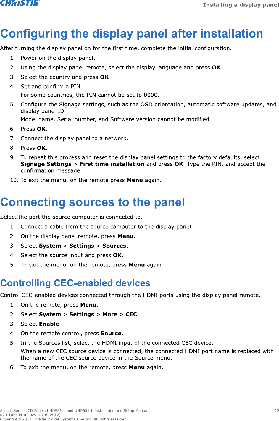 Christie Digital Systems Canada UHD651L TV set for digital signage with WiFi and bluetooth User Manual UH651 L v2