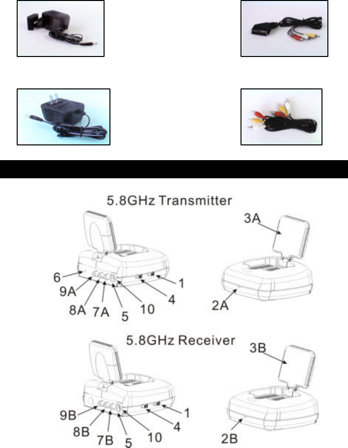 1. 5.8GHz Transmitter x 1 2. 5.8GHz Receiver x 1