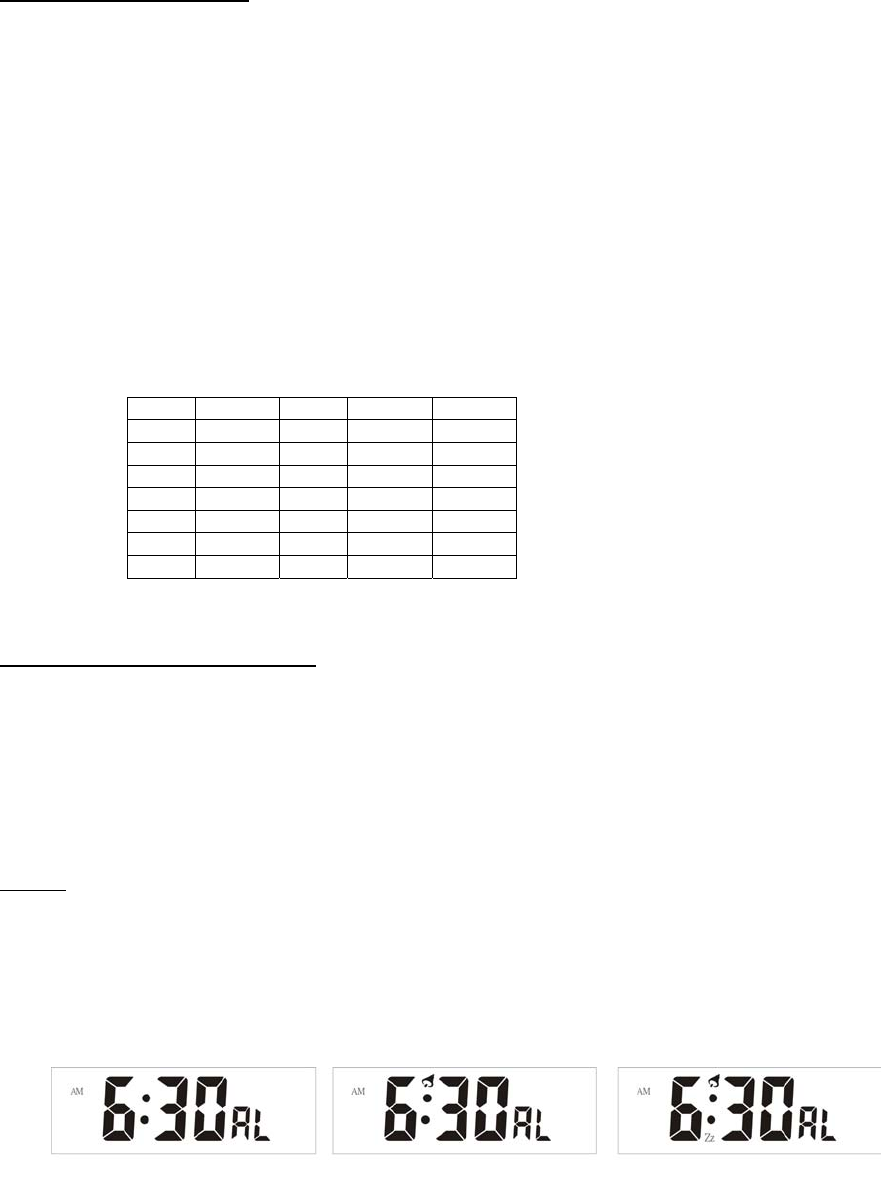 - In alarm mode, press it to turn on/off alarm and snooze.
