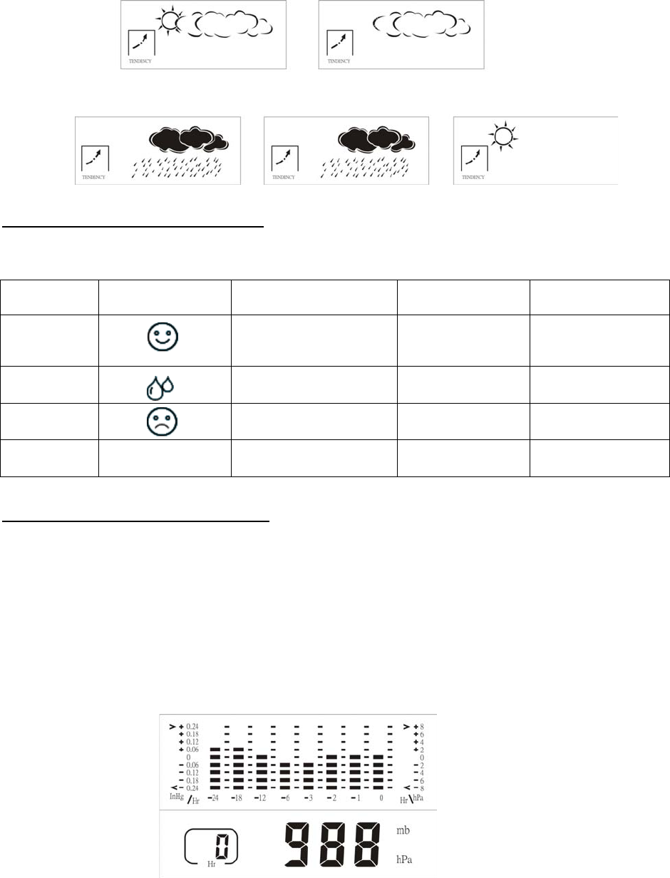 - Displays the current atmospheric pressure data and indicates the last 24 hours pressure history.