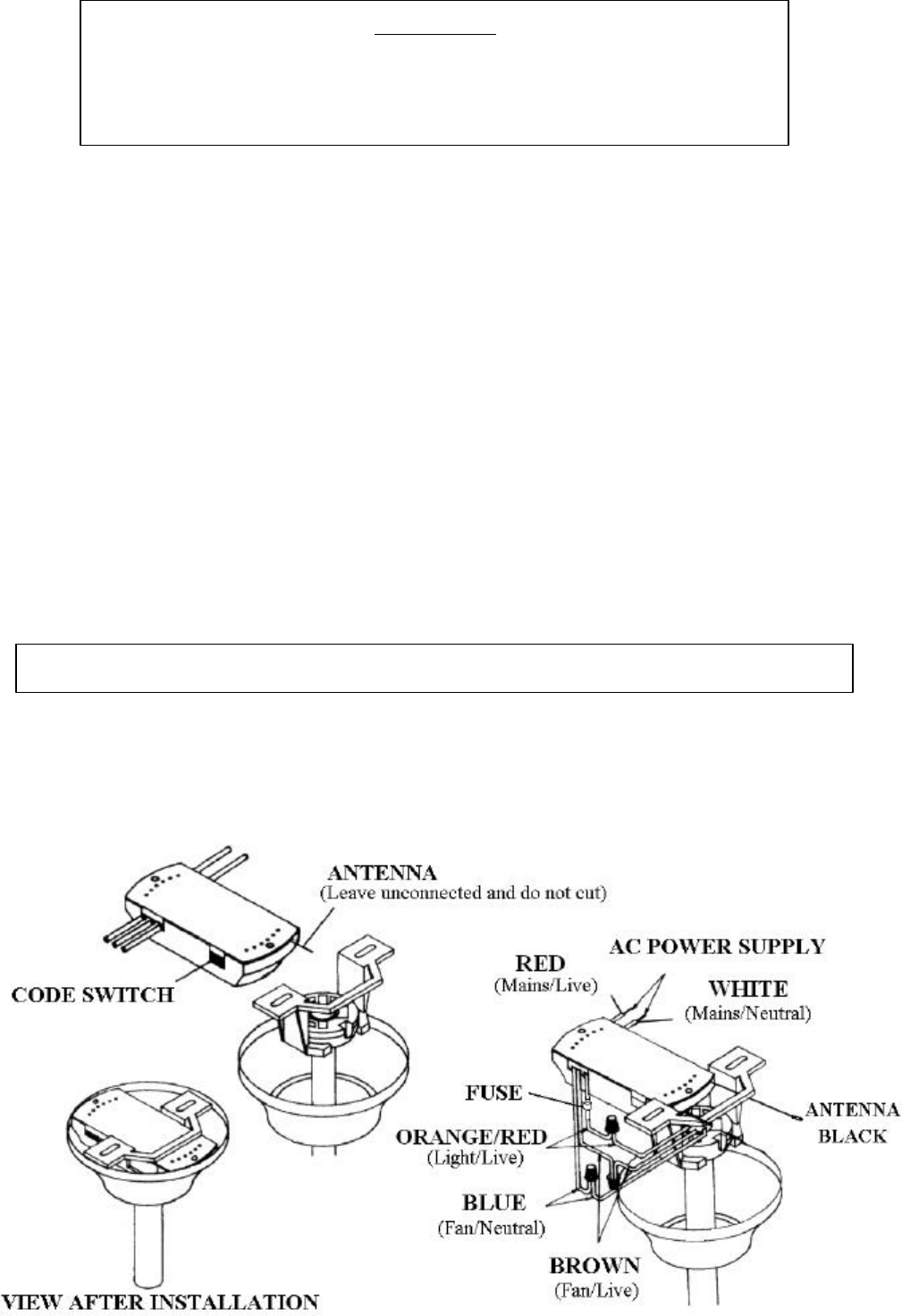 3.The supply to the remote control receiver should be connected through a mains switch, i.e. existing wall