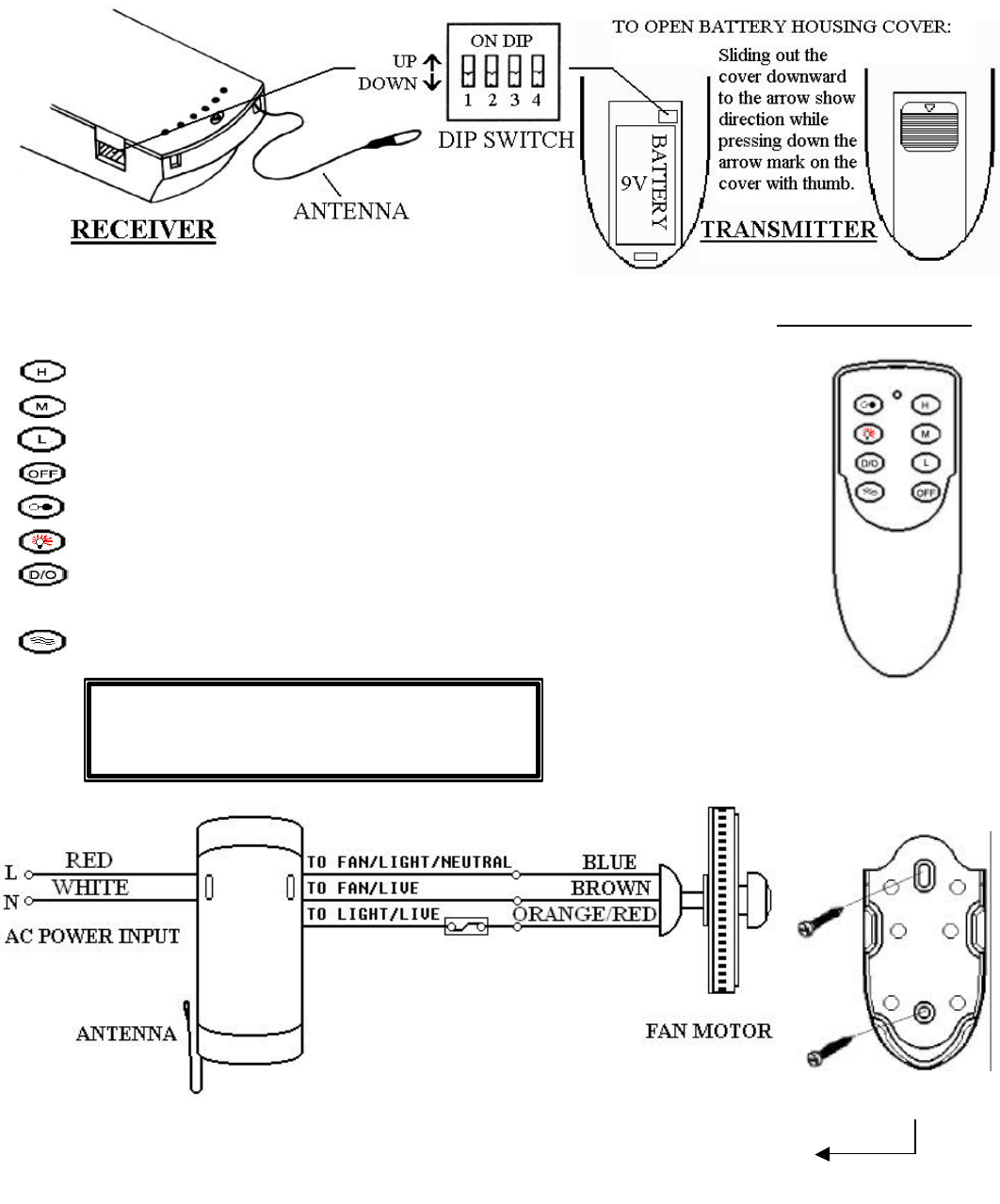 6.This unit is to be used for the control of ceiling fan and in a AC120V~240V 50Hz power supply only.