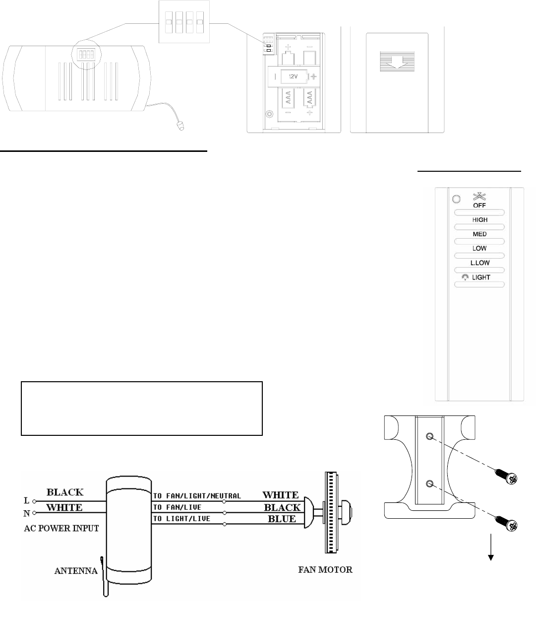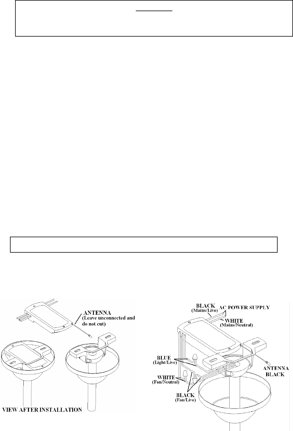 4.  Disconnect from power supply at wall switch before working on remote control receiver or ceiling fan.