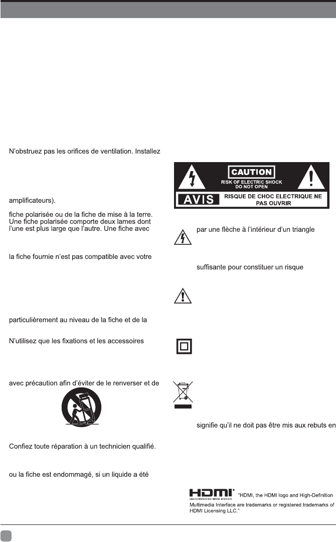 sources du signal d’entrée. TV/HDMI1/HDMI2/