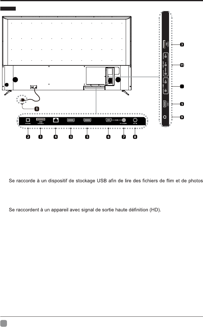 14. VOL+/-: Pour sélectionner un canal.