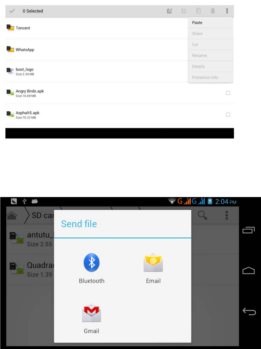 C. Share file:choose any file, long press it, it will popup “share”, choose the share way you want
