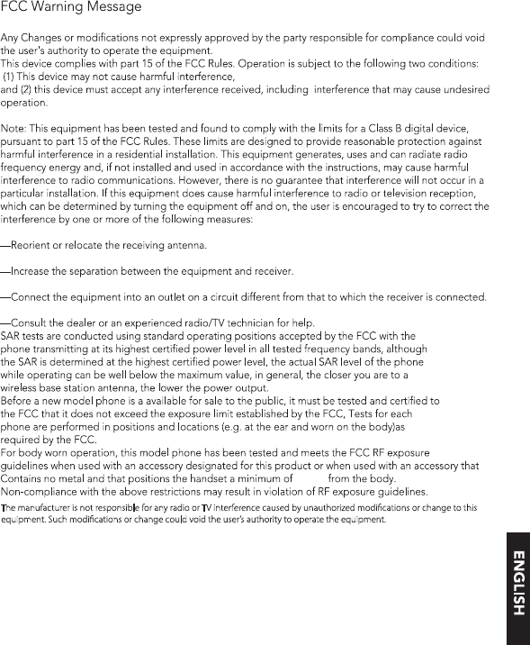 equipment. Such modifications or change could void the user’s authority to operate the equipment.