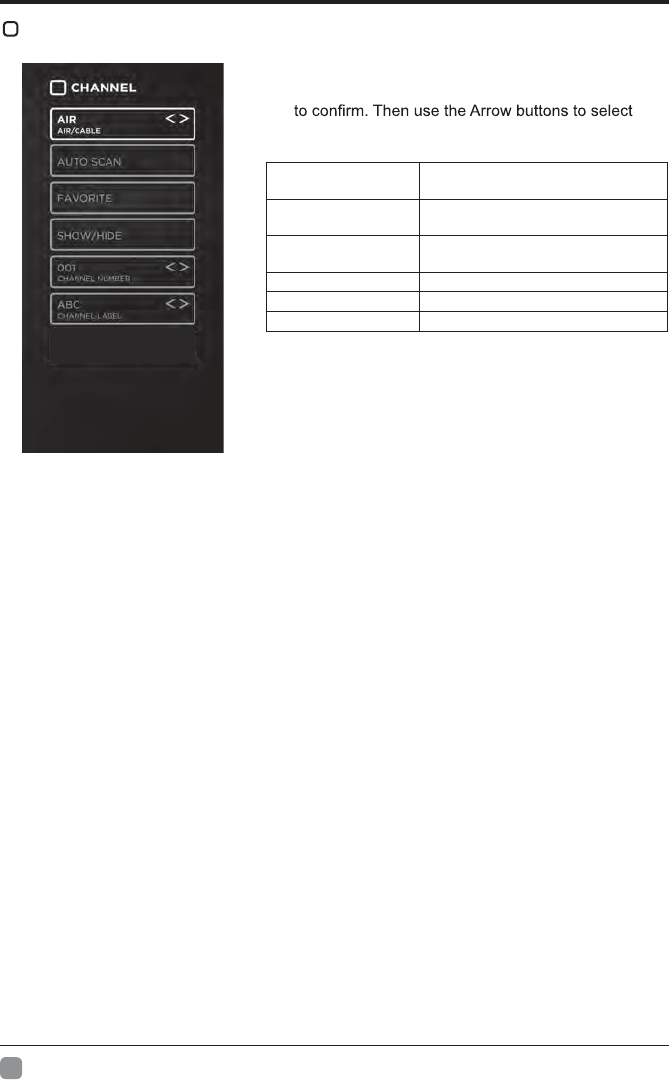 mettre en évidence RÉGLAGES TV et appuyez sur OK pour confirmer. Alors, cycle entre