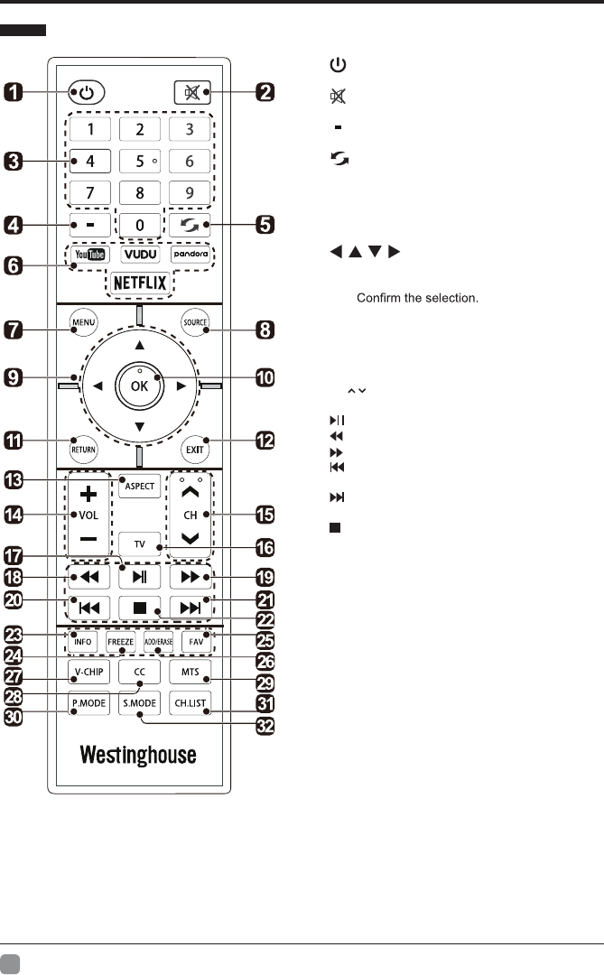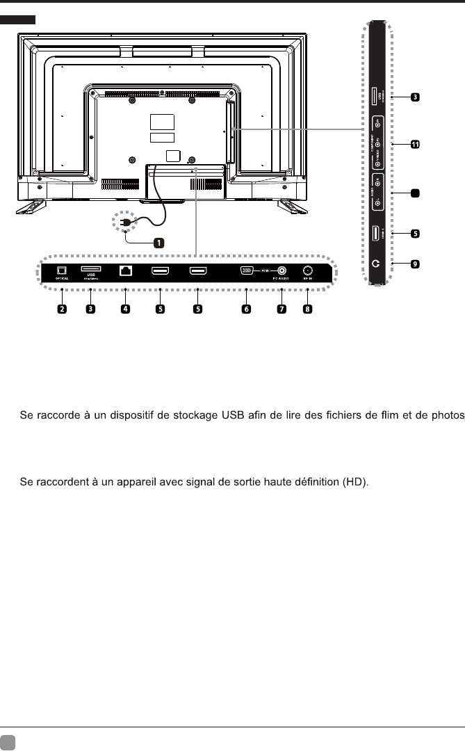 14. VOL+/-: Pour sélectionner un canal.