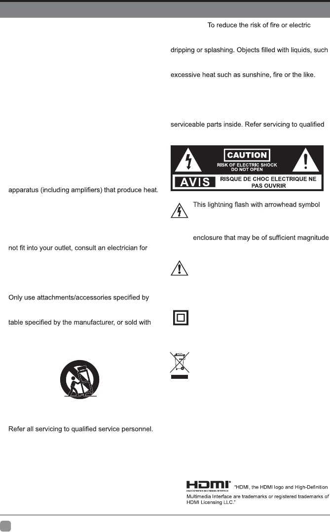 moisture. The apparatus should not be exposed to