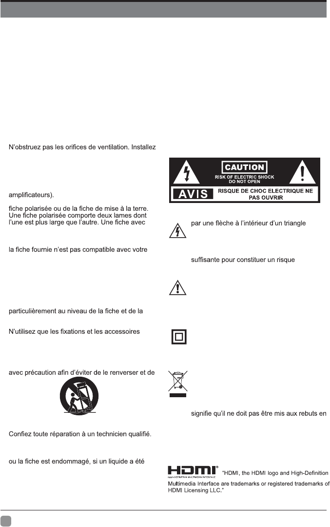 • No exponga el televisor directo al sol o cerca de una fuente de calor.
