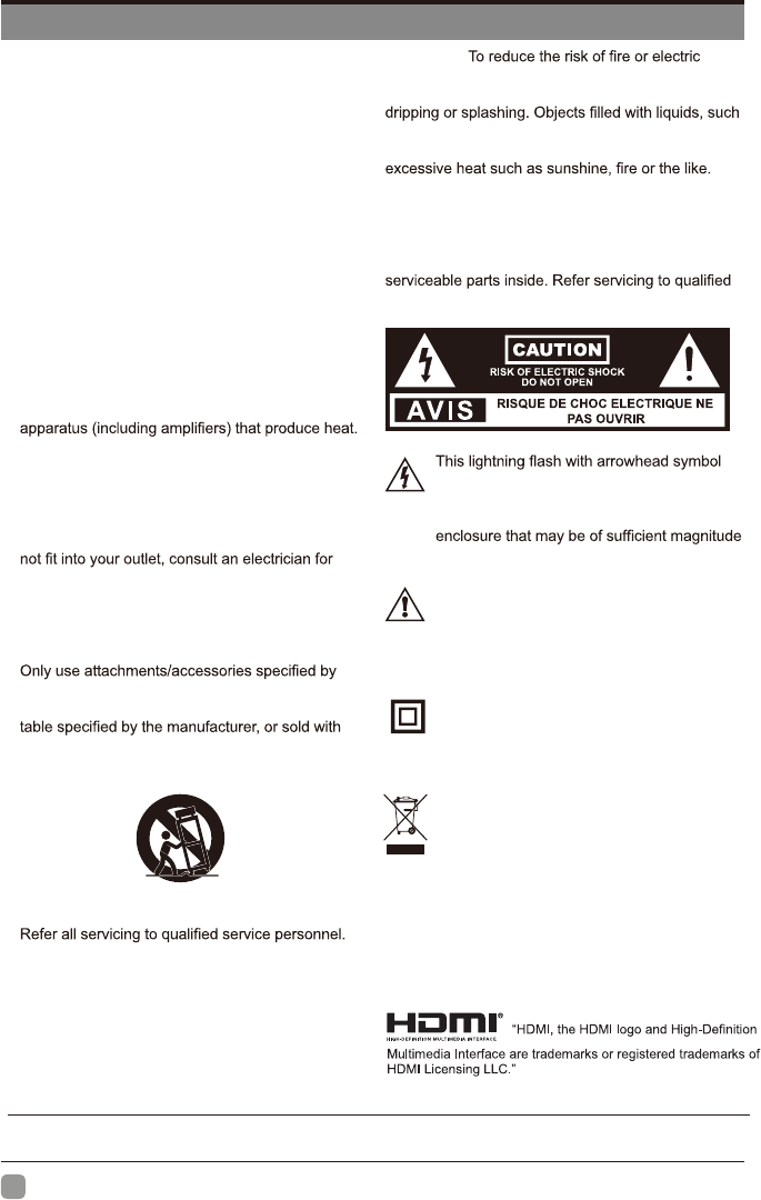 moisture. The apparatus should not be exposed to