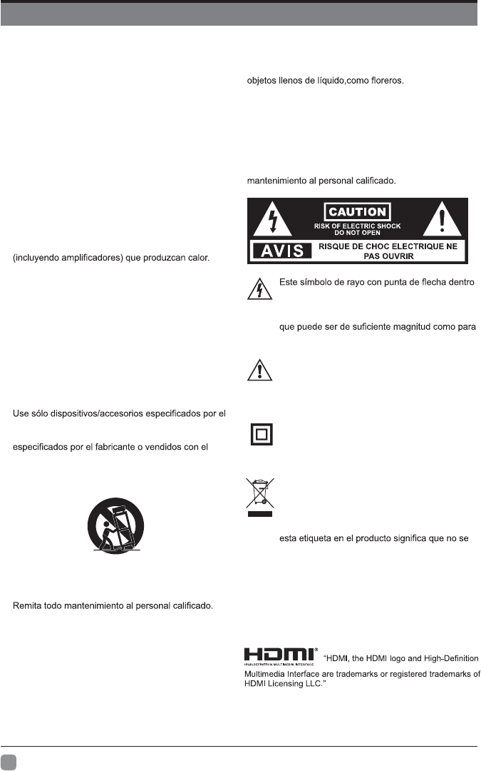 - La ventilación no debe impedirse al cubrir las aberturas de ventilación con objet
