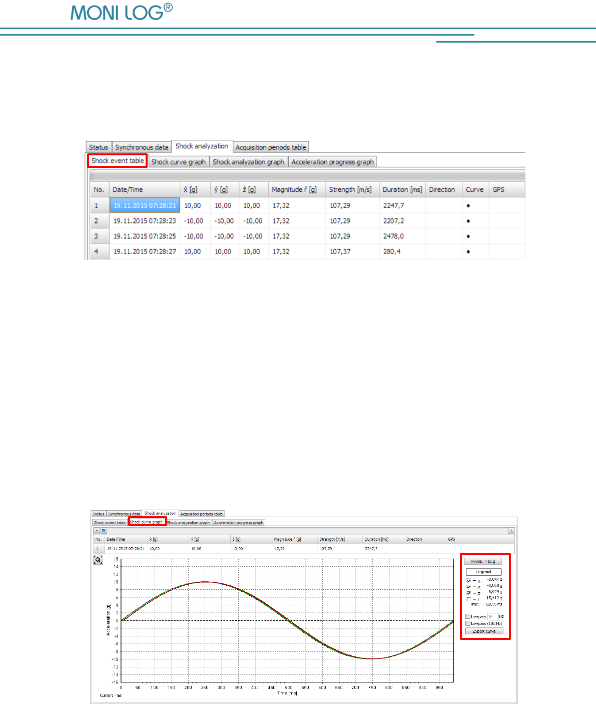 4.3.9 Shock events and shock curves ..................................................................................... 35