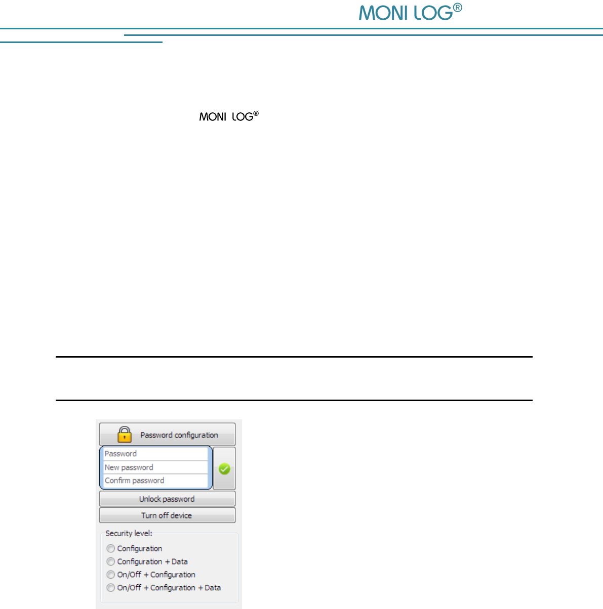 - Activation and deactivation of the device + data + configuration are password-protected