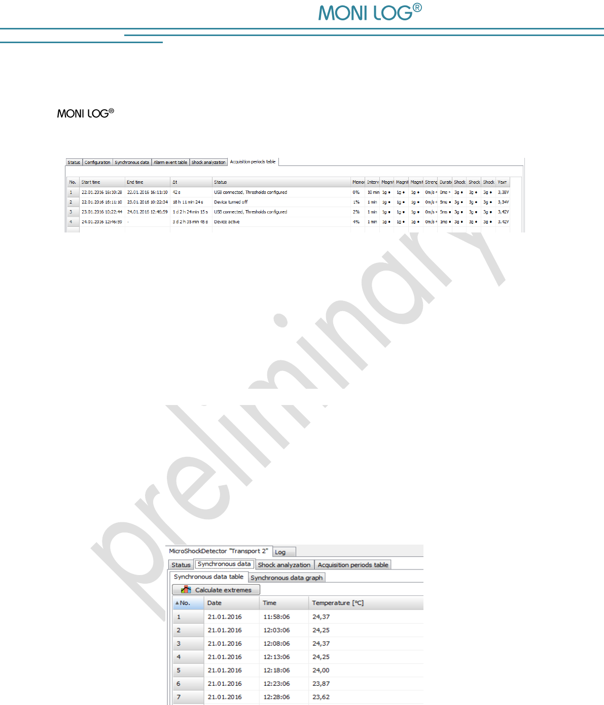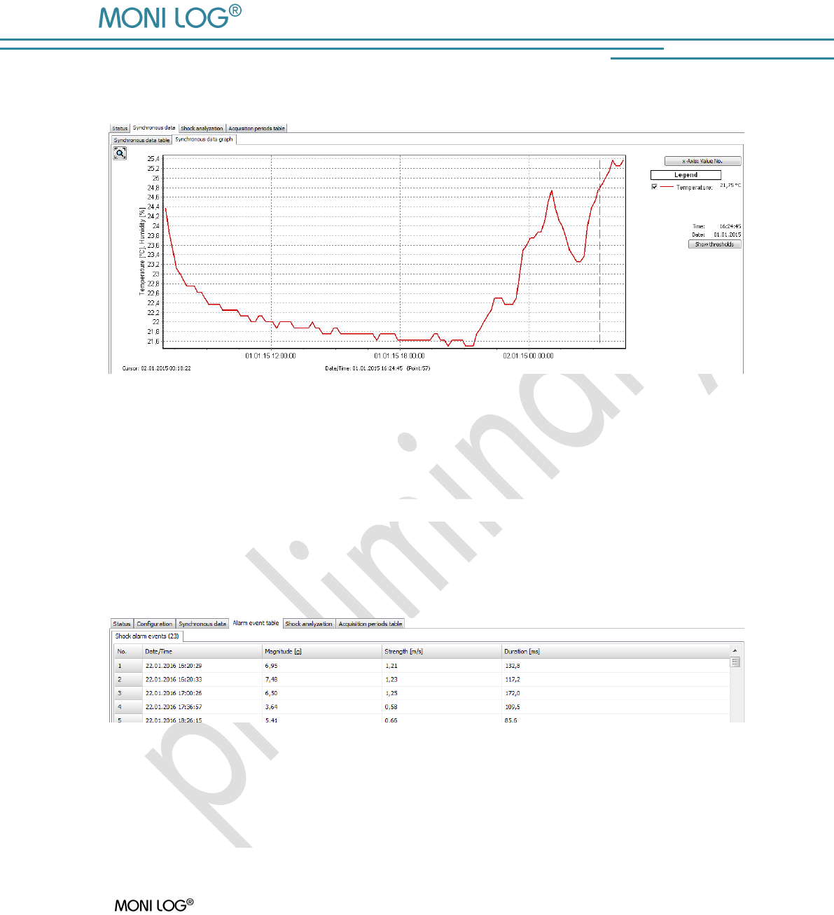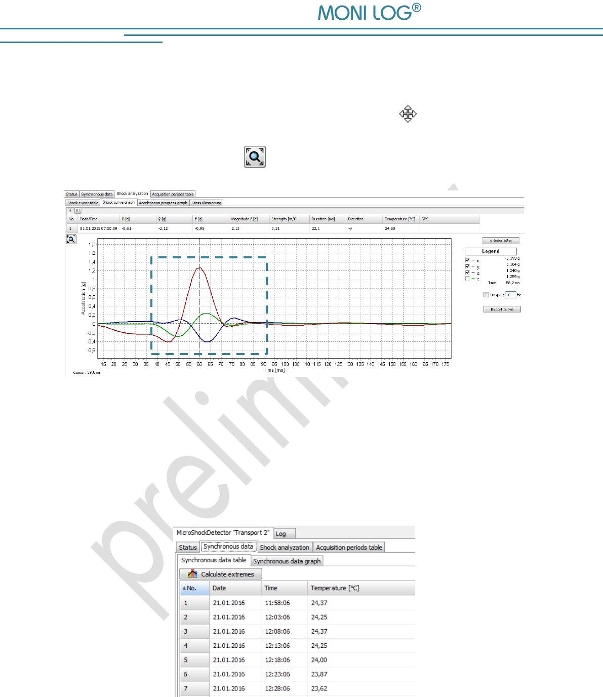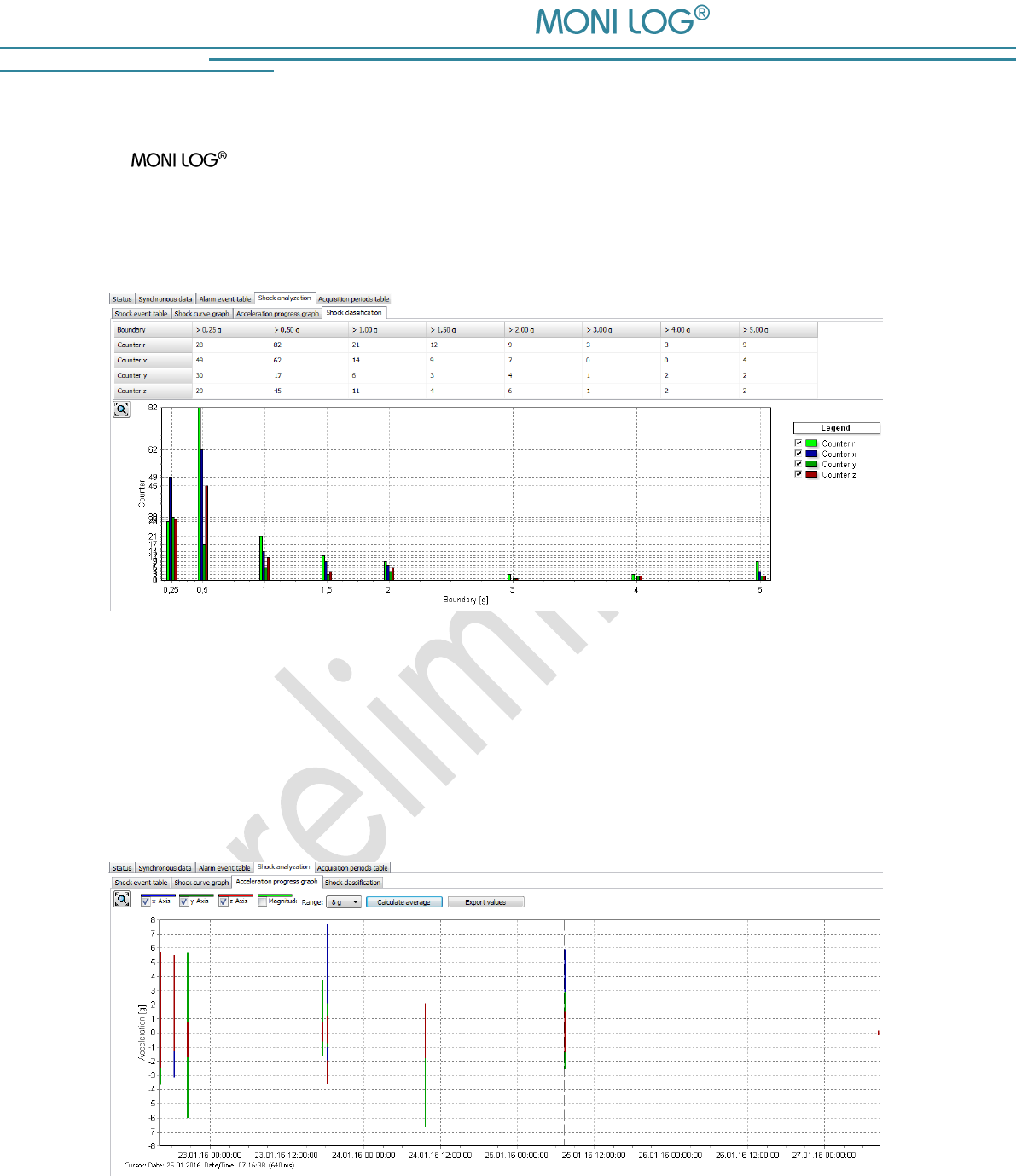thresholds provide reliable detection of limit value exceedances. Shock loads are recorded and