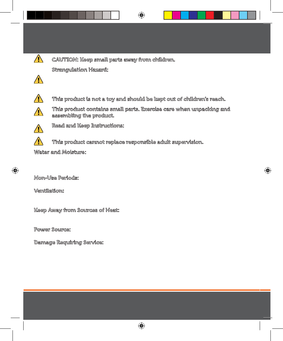 Water and Moisture: This product is designed for indoor use only. The unit should not