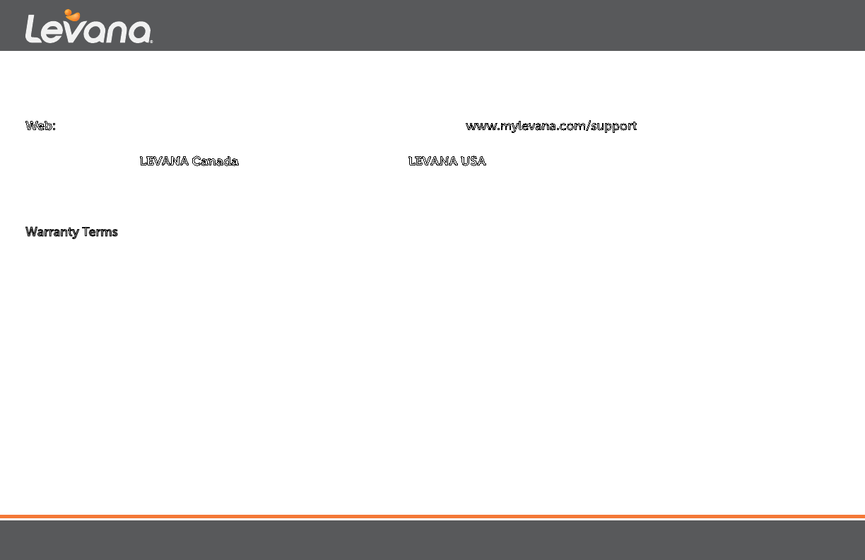 on our website at www.mylevana.com/support. Our experts will be happy to assist you in English, French and Spanish.